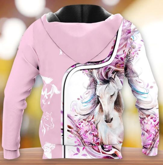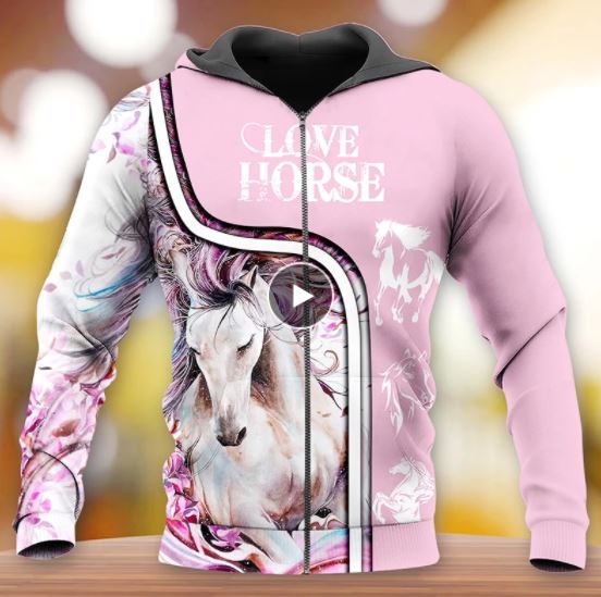 Mobile Preview: 3D-Print Unisex Sweatjacke Trainingsjacke Hoody "Love Horses pink "