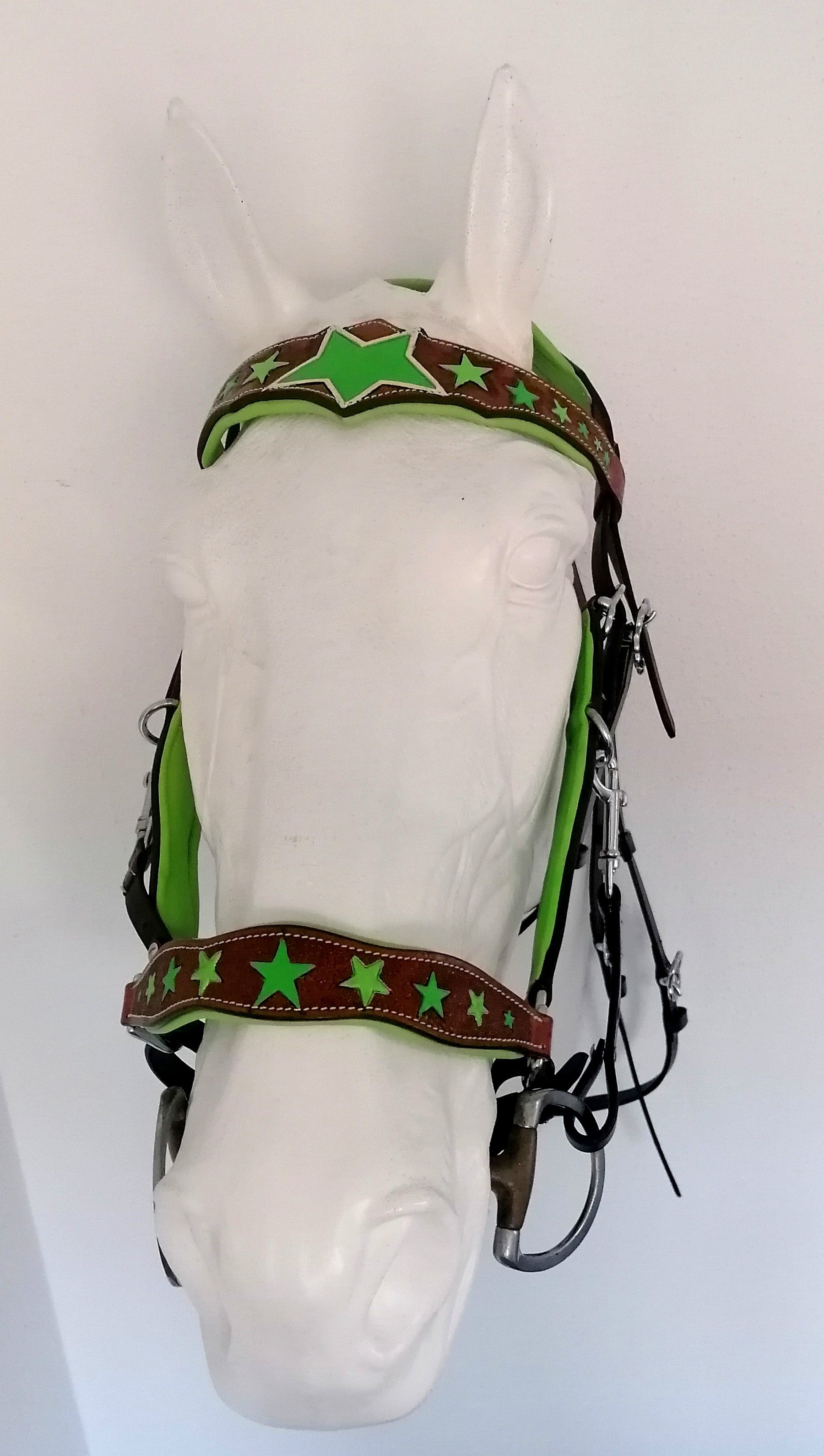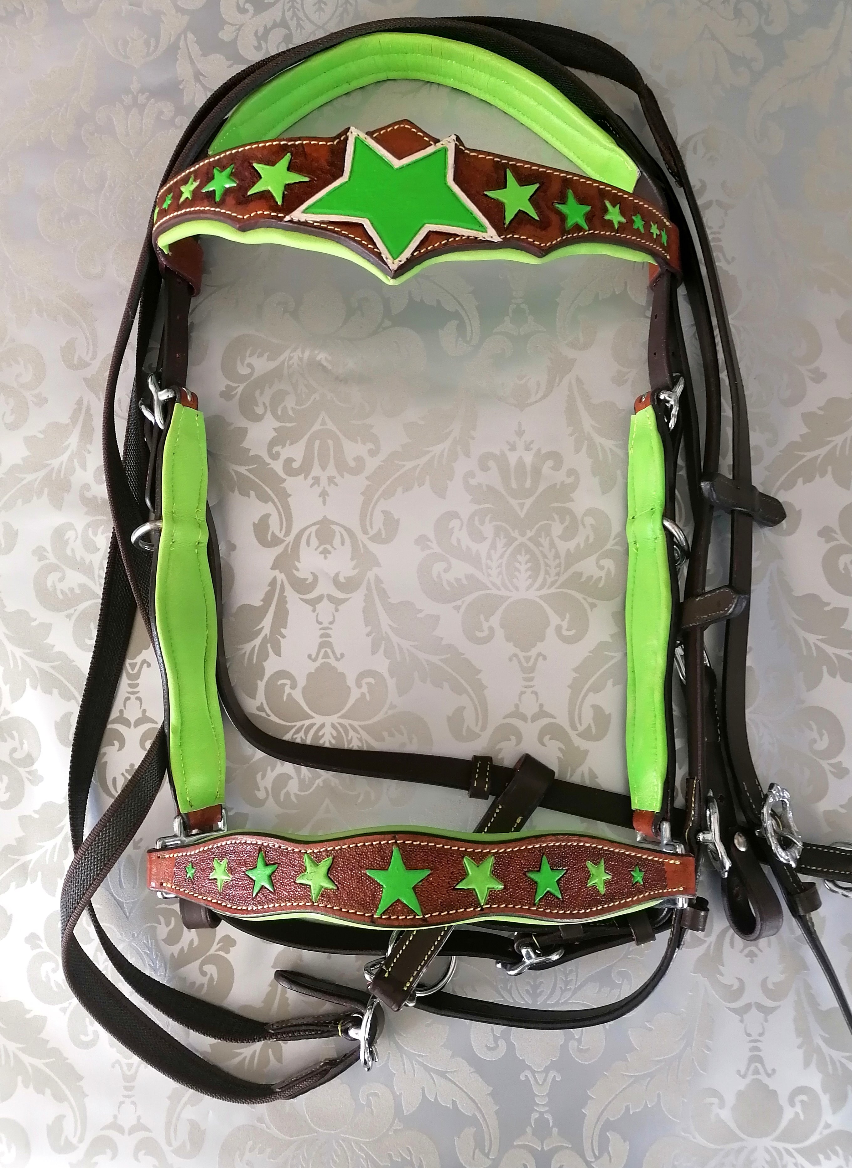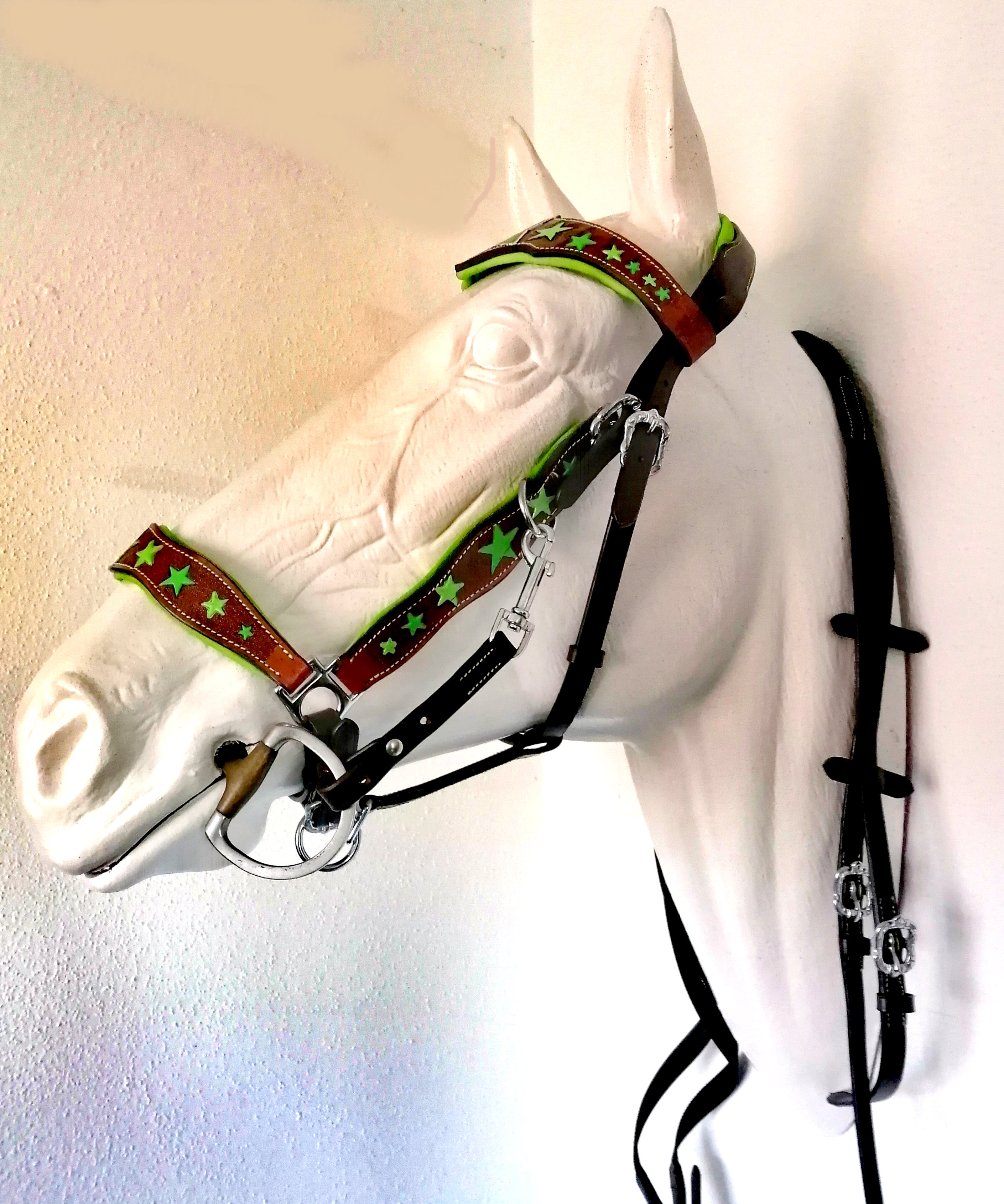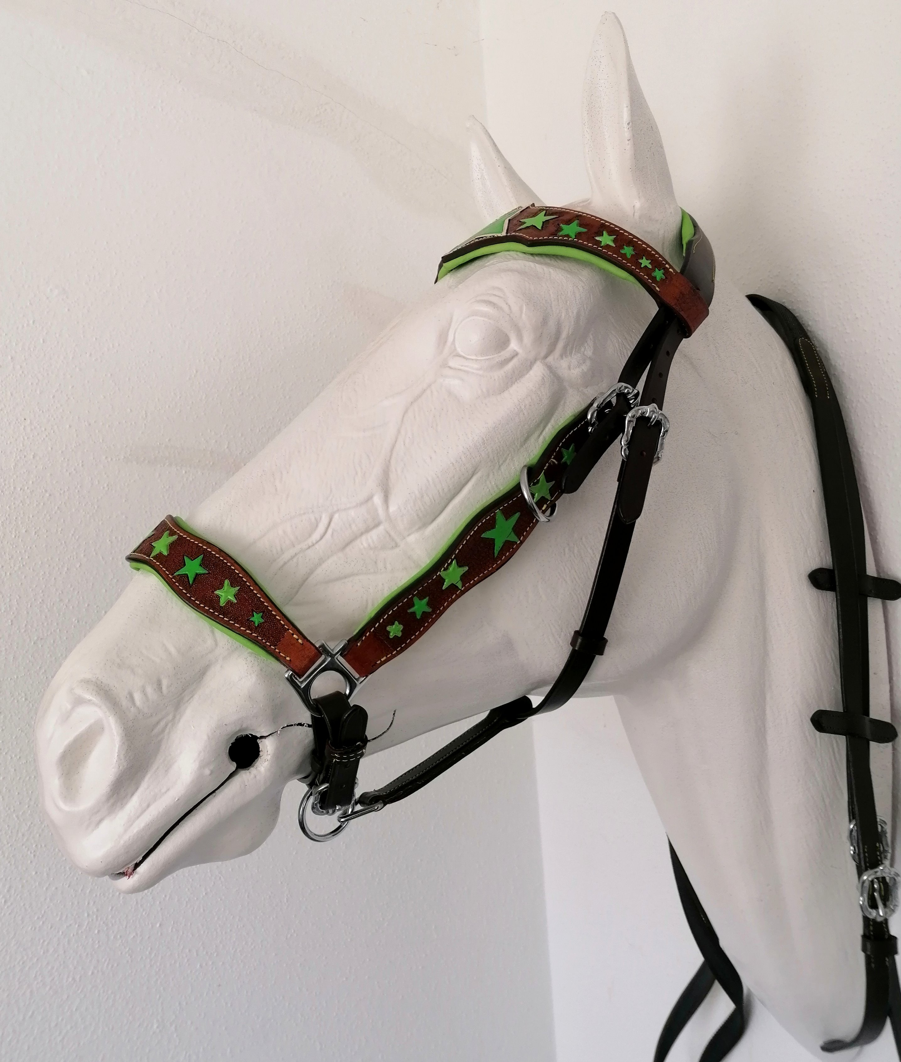 Höchste Qualität: Leder Wanderreithalfter "Green Stars" inkl Zügel