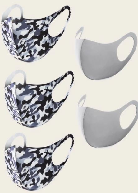 Waschbare Community-Gesichtsmaske "Camouflage Grau" 5 er Set