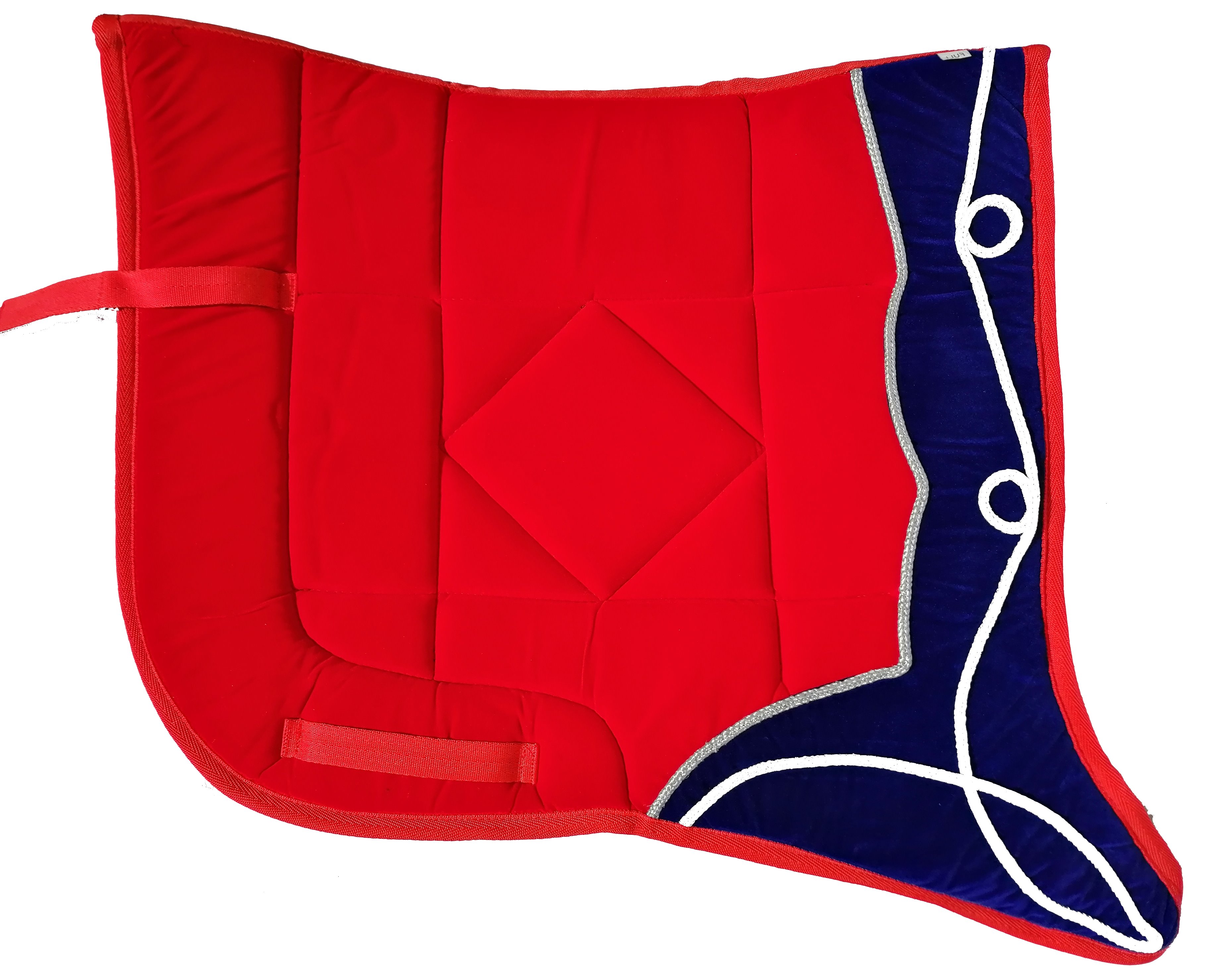 Barockschabracke "Jerez" in Rot/Royalblau mit Silberbordüre