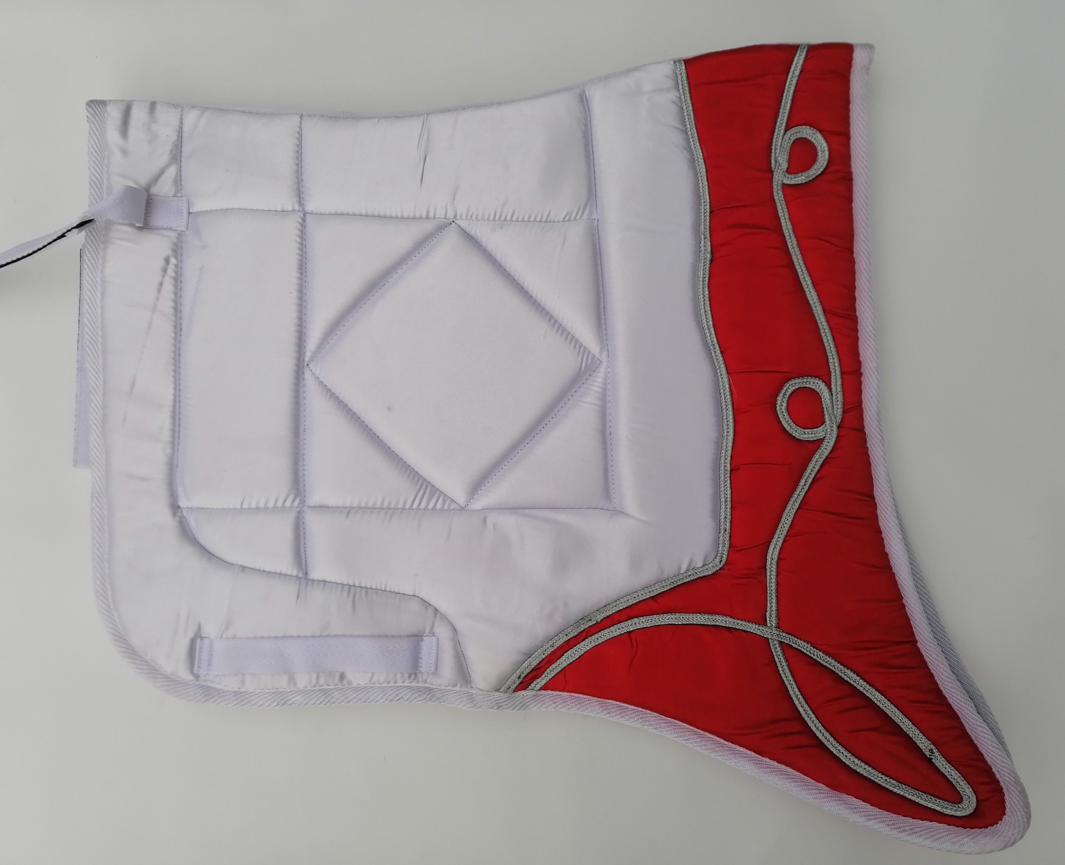 Barockschabracke "Jerez" in weiß/rot mit Silberbordüre