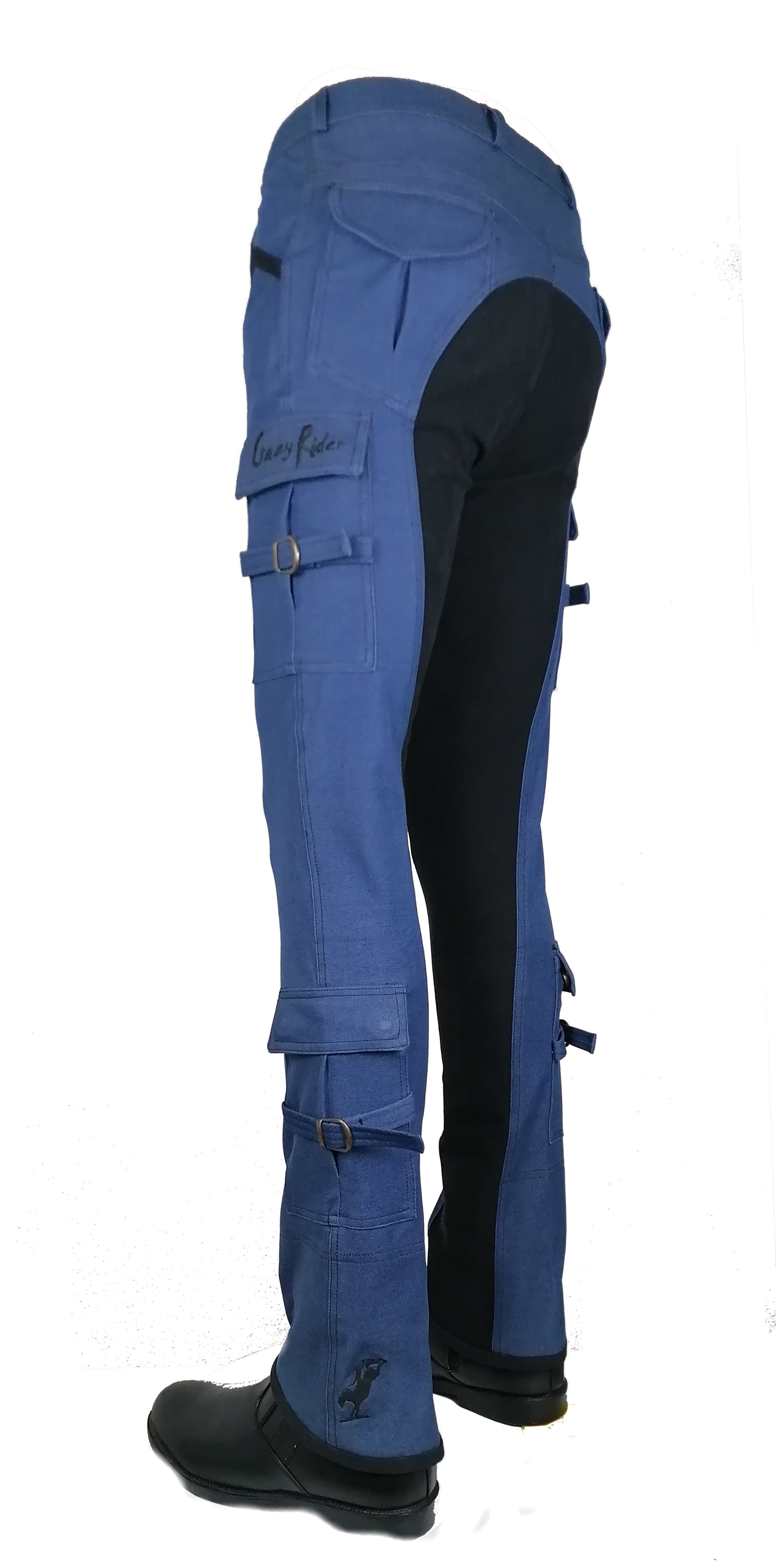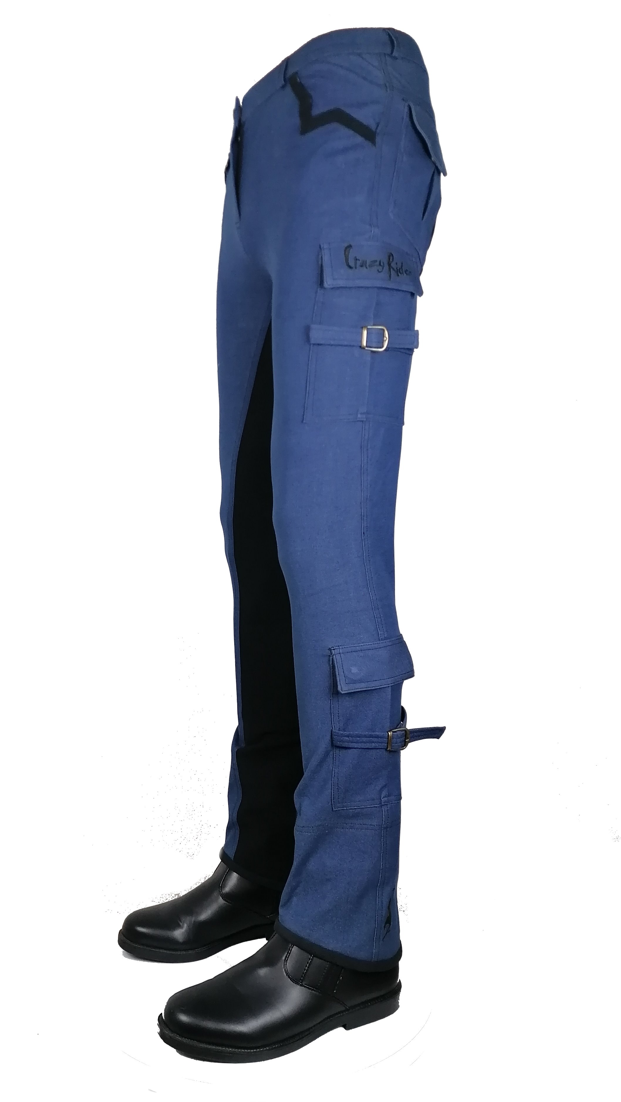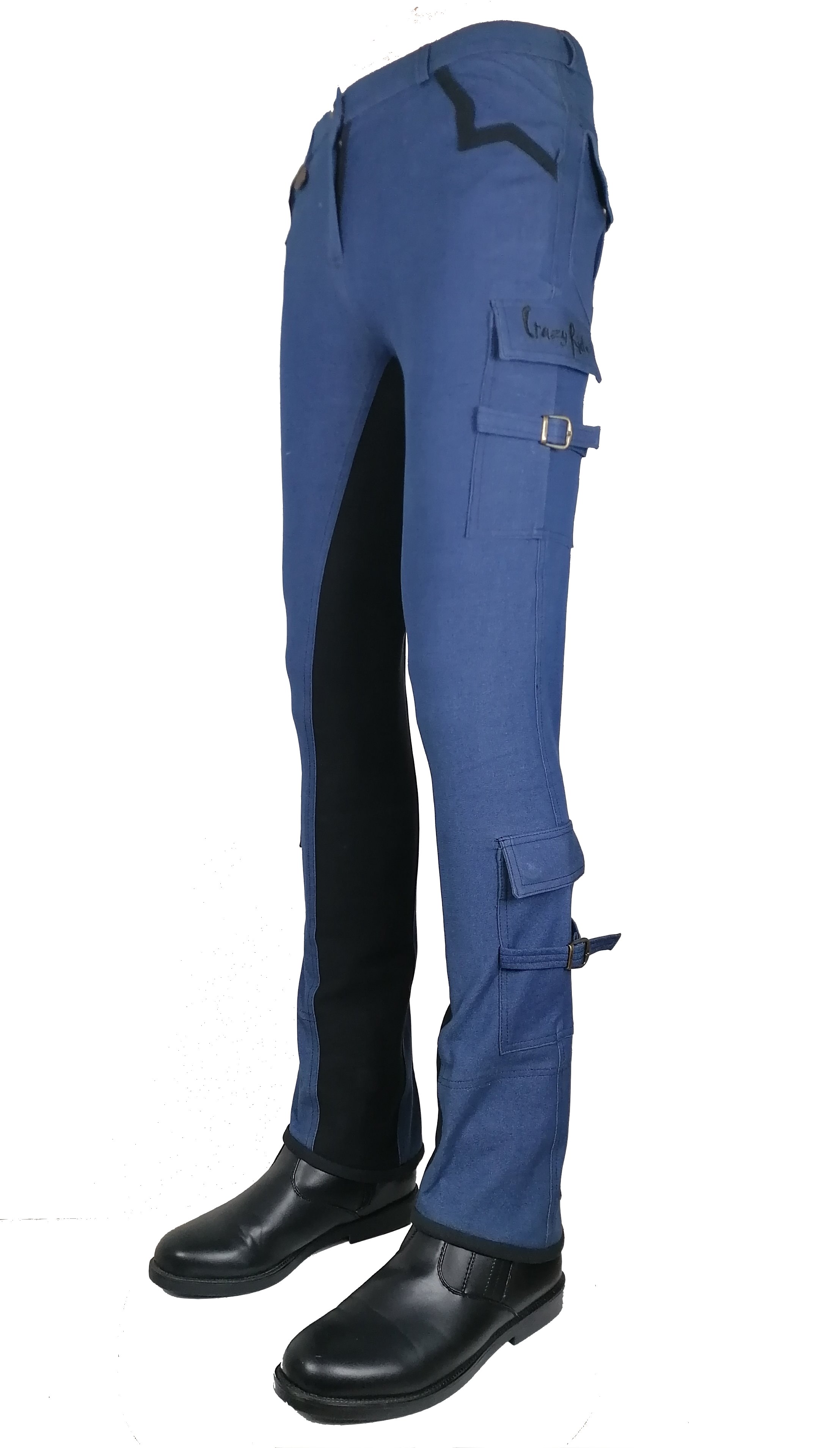 Diese Bodenarbeitshose im Jodhpurstil überzeugt durch viele Details, ihr tolles Design sowie ihr elastisches Material. Die Vorderseite ist ausgestattet mit 2 praktischen Taschen, modisch aufgepeppt durch die Kontraststickerei. An beiden Oberschenkeln und Unterschenkeln befindet sich je eine aufgesetzte Tasche, die sicher mit Magnetknöpfen verschlossen werden kann und auch großen Handys genügend Platz bietet. Der Vollbesatz ist aus haftendem Imitatleder und bietet optimalen Schutz und Halt im Sattel. Die Beinenden können mittels verstellbarem Gummizug rutschfest in den Schuhen am Fuß befestigt werden und der ergonomische Beinabschluss garantieren optimalen Sitz.
