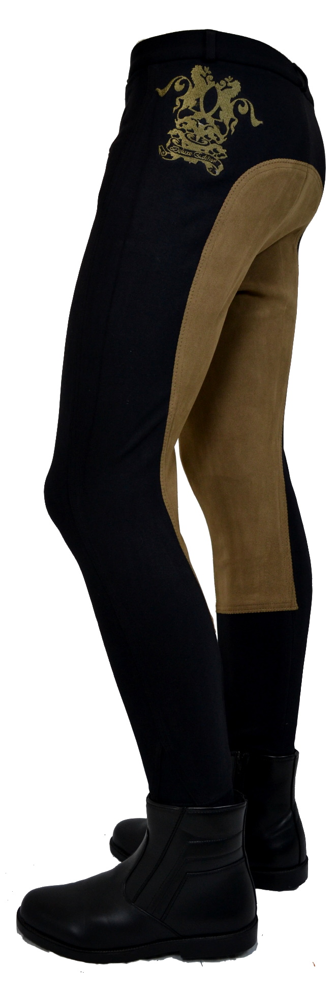 Damen Vollbesatzreithose "Deluxe Edition" in Schwarz/Camel