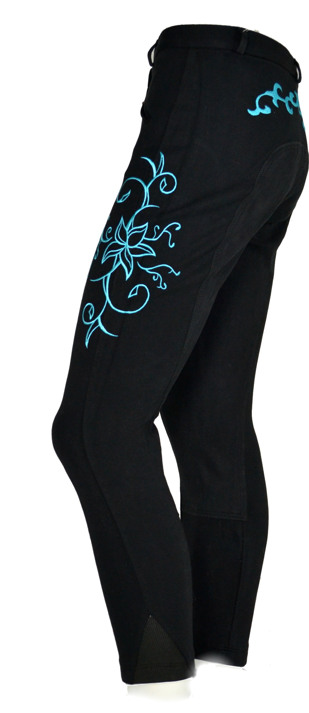 Damen Vollbesatzreithose  "Flower" in Schwarz/Türkis