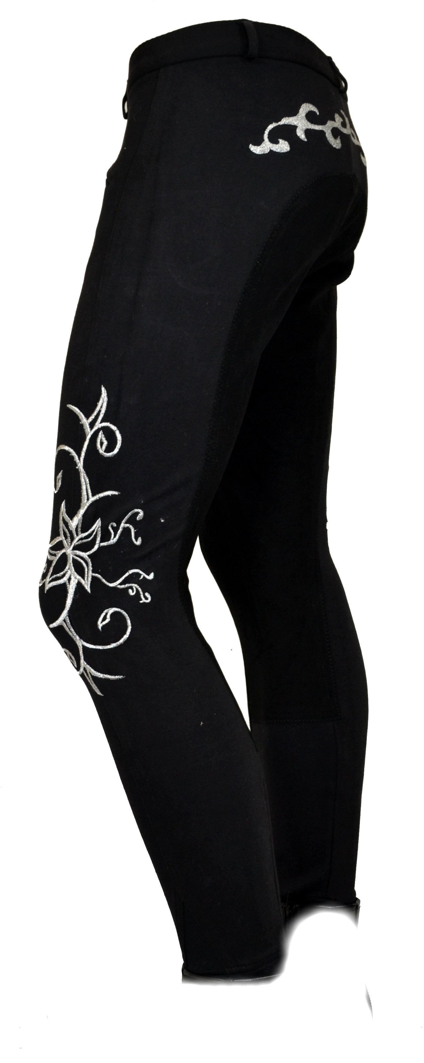 Damen Vollbesatzreithose  "Flower" in Schwarz/Silber