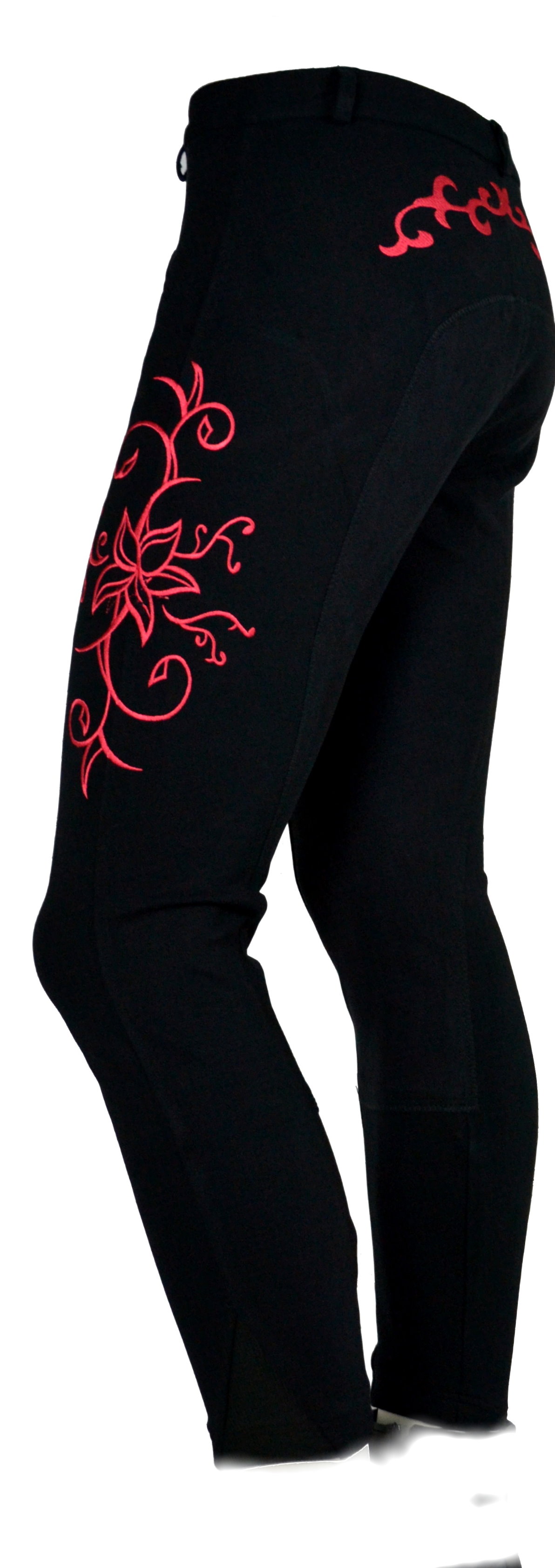 Damen Vollbesatzreithose  "Flower" in Schwarz/Rot
