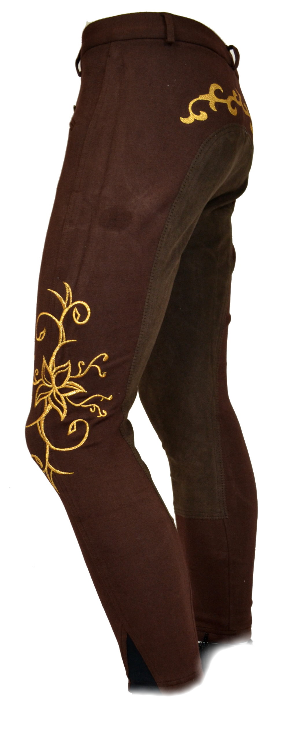 Damen Vollbesatzreithose  "Flower" in Braun/Camel