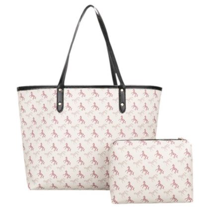 Vegane Handtasche und Kulturbeutel im Set in creme