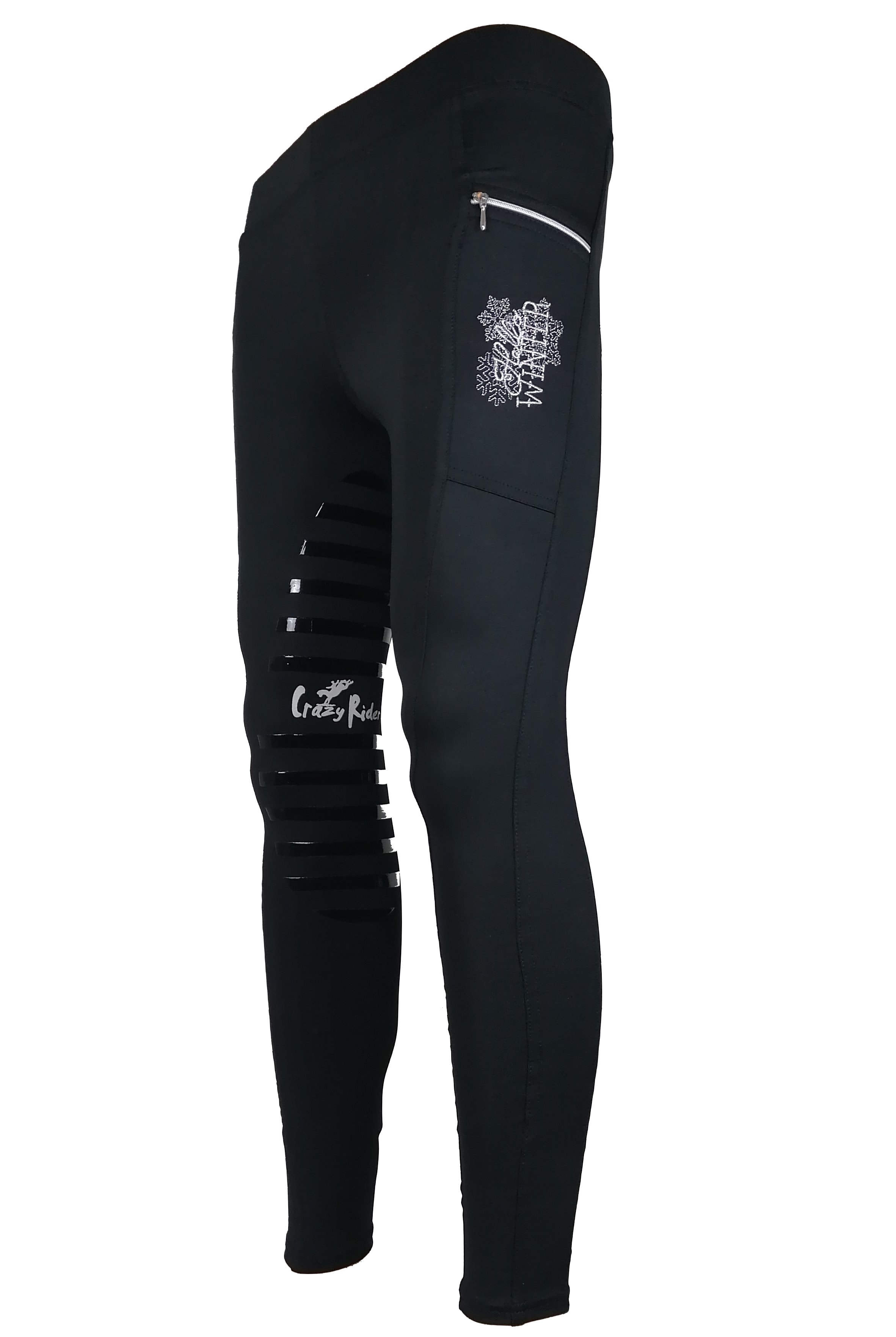 Mobile Preview: Kuschlige Thermo Reitleggings "Hello Winter" mit High Grip in Schwarz